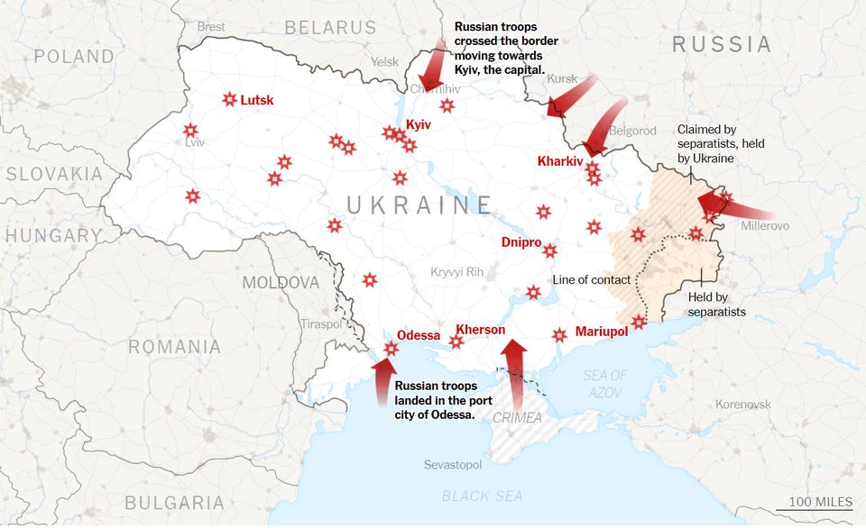 Vào rạng sáng ngày 24-2, ông Putin đã khởi động một "chiến dịch đặc biệt" ở Ukraine, với mục đích được cho là "đảm bảo hòa bình" tại các Cộng hòa Nhân dân ly khai Donetsk và Lugansk ở vùng Donbass mà Nga vừa công nhận đầu tuần này.