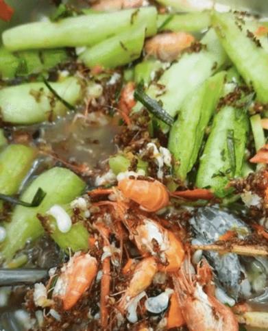 Như mới đây, một đoạn clip viral trên TikTok ghi lại cảnh nhóm người nọ ngồi ăn ngon lành món canh chua ngập ngụa kiến vàng bên trong.