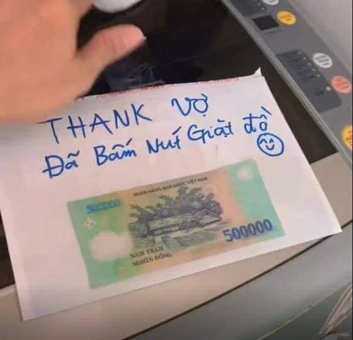 Trên mạng bất ngờ xuất hiện một bài đăng với những hình ảnh ghi lời cảm ơn chân thành. Kèm theo đó là tờ tiền 500.000 đồng của người chồng dành cho vợ. Khiến hội chị em đứng ngồi không yên.