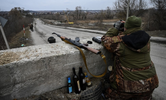 Tại Irpin, thành phố cách thủ đô Kiev khoảng 25 km về phía tây bắc, nhiều người dân đang sơ tán đã phải vội vã tìm chỗ ẩn nấp khi rocket rơi xuống khu vực gần đó.