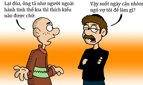 – Đã không thích thì tại sao suốt ngày cậu nhòm ngó vợ tôi hả?