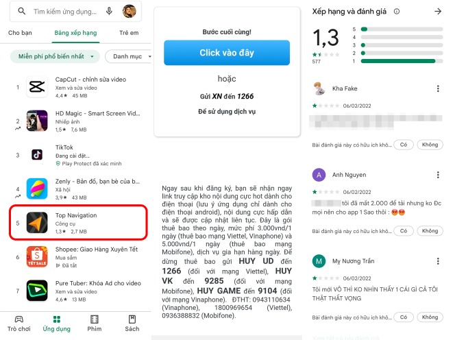 Top Navigation, từng đứng thứ năm trong bảng xếp hạng tải nhiều tại Việt Nam, nằm trong số các ứng dụng Android lừa đảo vừa bị phanh phui.