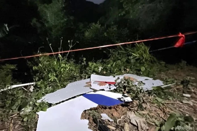 Mảnh vỡ máy bay phát hiện tại hiện trường vụ tai nạn ở huyện Đằng, Quảng Tây. Ảnh:AP.