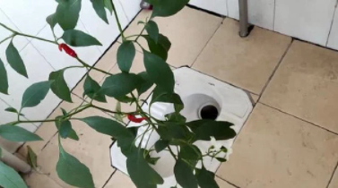 Chàng trai đã không khỏi choáng váng khi chứng kiến cảnh tượng cả một cây ớt đã mọc cao, sai quả ở trong nhà vệ sinh của phòng ký túc này.