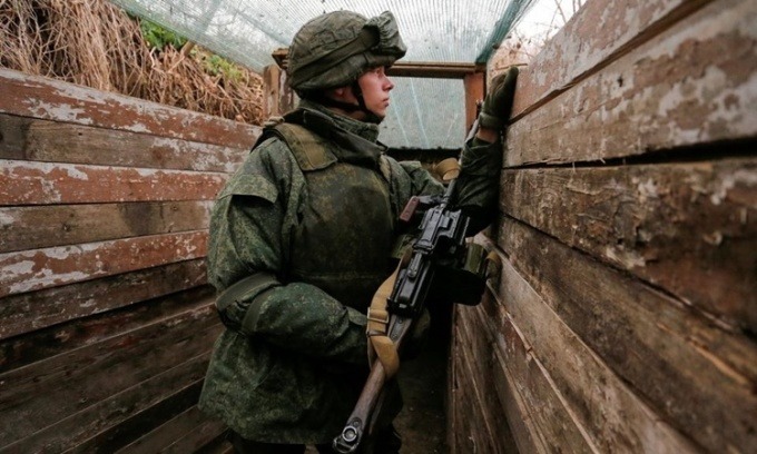 Binh sĩ của Cộng hòa Nhân dân Donetsk tự xưng tại một vị trí tiền tuyến bên ngoài thành phố Donetsk, miền đông Ukraine, hồi tháng 11/2021. Ảnh: Reuters.