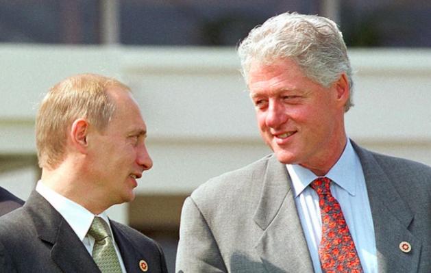Tổng thống Nga Vladimir Putin và cựu Tổng thống Mỹ Bill Clinton. Ảnh: TASS