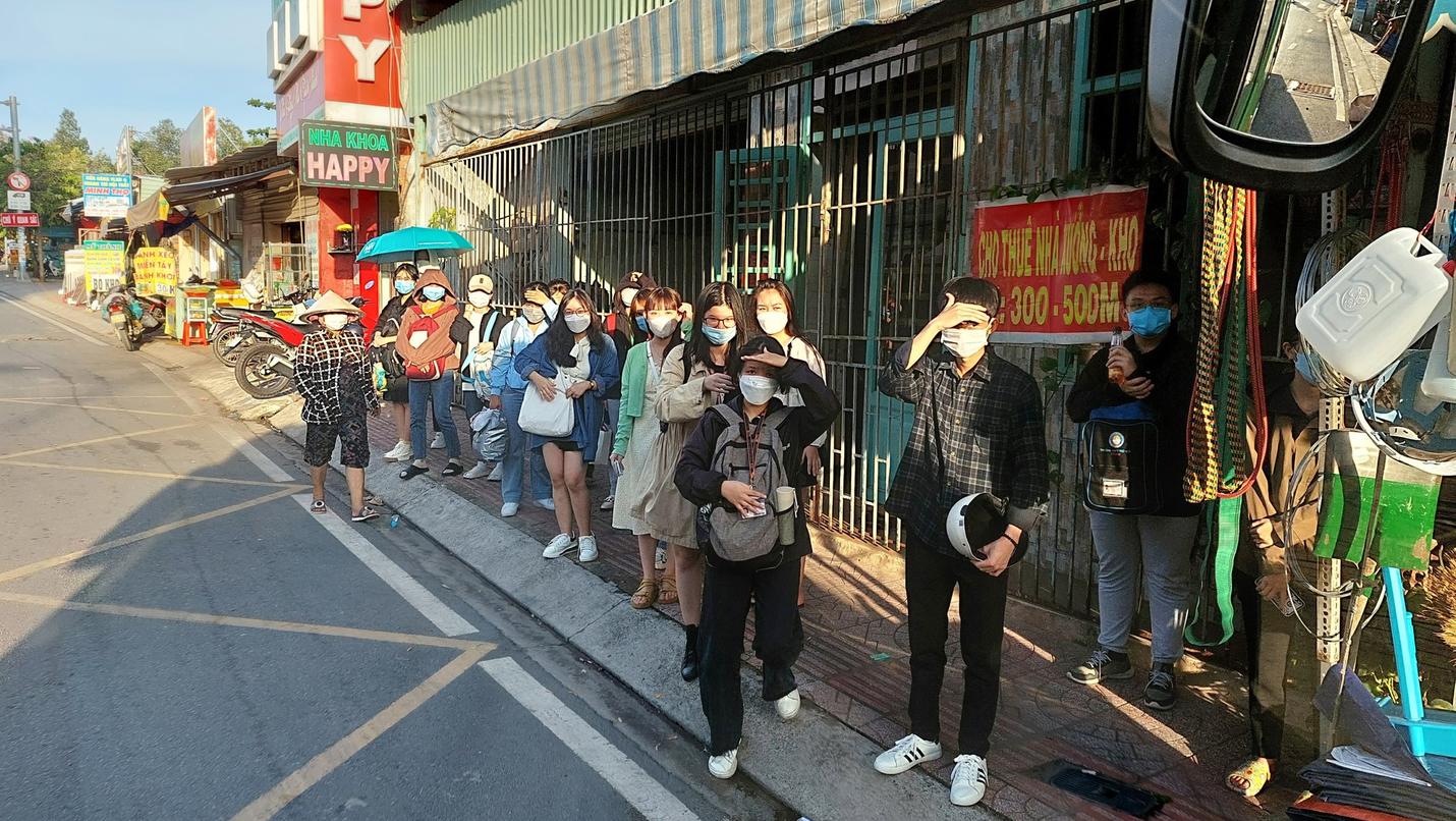 Tại trạm dừng trên đường Lê Văn Việt thuộc địa bàn Thủ Đức, hàng dài học sinh, sinh viên đứng chờ xe