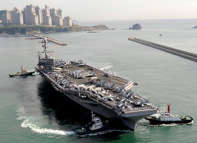 USS George Washington là một tàu sân bay lớp Nimitz được đặt theo tên của vị tổng thống đầu tiên của nước Mỹ. Với chiều dài 333 mét, chiều rộng 78 mét và chiều cao 74 mét, hàng không mẫu hạm này từng giữ vai trò soái hạm của Hạm đội Thái Bình Dương. Hiện tại, con tàu đang trong quá trình đại tu lớn tại xưởng đóng tàu hải quân ở thành phố Newport News, bang Virginia. Việc đại tu đã bắt đầu từ năm 2017 và dự kiến sẽ hoàn tất vào cuối năm nay.