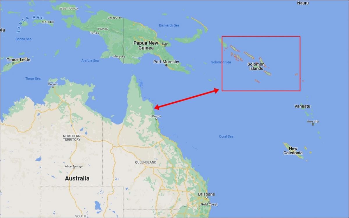 Vị trí của Quần đảo Solomon (bên phải) rất gần Australia. Đồ họa: Google Map.