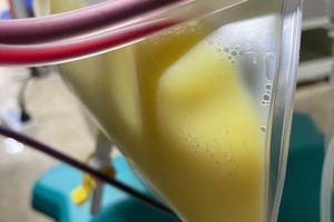 Các bác sĩ BV Đa khoa Hùng Vương, Phú Thọ vừa cấp cứu nam bệnh nhân 40 tuổi vào viện trong tình trạng đau dữ dội vùng thượng vị, bụng chướng, kết quả CT ổ bụng: viêm tụy cấp bathazal D, xét nghiệm triglyceride máu tăng cao: >55 mmol/L (trong khi người bình thường là 0-2,3 mmol/L), máu lấy ra trắng đục như sữa. Lập tức bệnh nhân được chỉ định thay huyết tương cấp cứu ngay trong đêm.