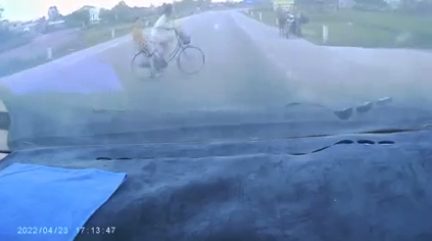 Lúc này tài xế điều khiển xe ôtô 7 chỗ đi với vận tốc khá nhanh, khi đi đến một ngã ba thì bất ngờ hai cháu nhỏ chở nhau trên xe đạp băng qua đường.