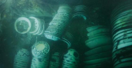 Cổ vật trong con tàu đắm Cù Lao Chàm dưới đáy biển. (Nguồn: Báo Khoa học phát triển)