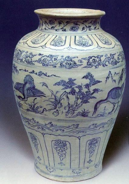 Nhà nghiên cứu Nguyễn Đình Chiến đã nhận xét như sau khi nói về đồ gốm trong con tàu đắm Cù Lao Chàm: Khi thì tỉa vẽ thật chi tiết, khi thì phóng bút nhanh và thoáng. Lối thể hiện không gian ba chiều, luật viễn cận trong hội hoạ đều như được sử dụng rất nhuần nhuỵ. Chỉ đôi ba nét bút chấm phá đã vẽ nên cảnh non sông gấm vóc.