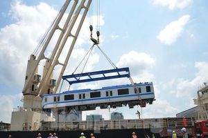 Hai đoàn tàu cuối cùng của tuyến Metro số 1 Bến Thành - Suối Tiên đã về đến TPHCM để chuẩn bị cho công tác chạy thử.Đoàn tàu thứ 16 và 17 là hai đoàn tàu cuối cùng của tuyến Metro số 1 Bến Thành - Suối Tiên đã được tàu biển vận chuyển từ Nhật Bản về đến cảng Khánh Hội, TPHCM vào sáng 6/5.