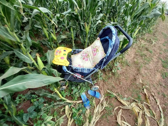 Tại hiện trường, người dân và lực lượng chức năng phát hiện dép, xe đẩy, điện thoại... của chị T.