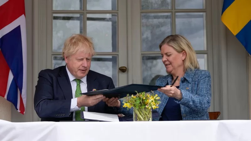 Theo như lời phát biểu của Thủ tướng Anh Boris Johnson rằng "trong trường hợp xảy ra thảm họa hoặc một cuộc tấn công vào Thụy Điểnsau khi Thủ tướng này có cuộc họp báo ở Thụy Điển với Thủ tướng Magdalena Andersson sau khi ký tuyên bố an ninh chưa từng có.