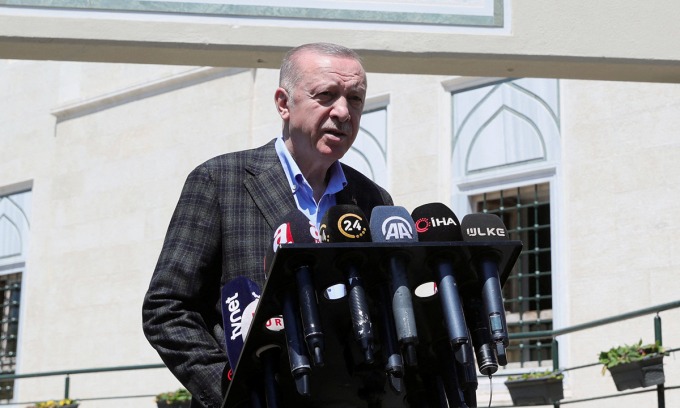 Tổng thống Thổ Nhĩ Kỳ Recep Tayyip Erdogan trong cuộc họp báo tại Istanbul ngày 13/5. Ảnh: Reuters.