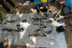 Ngay sau khi tiếp nhận thông tin, lực lượng công an đến hiện trường xác minh và bơm nước tát ao để tìm thi thể. Tại vị trí Hồng khai nhận giấu xác chồng, lực lượng công an phát hiện 1 khúc xương, 1 dây thắt lưng nam và 1 quần jeans.