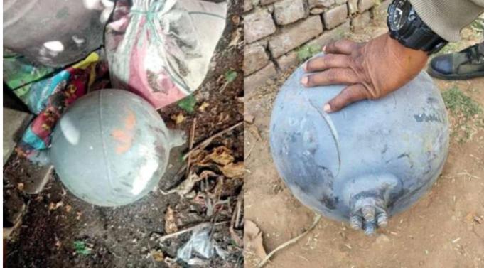 Một trong những quả cầu kim loại từ trên trời rơi xuống được phát hiện ở Ấn Độ (Ảnh: India TV).