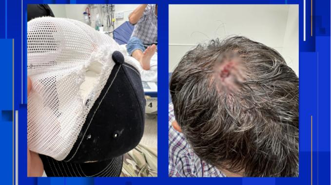 ABC ngày 26/5 đăng những hình ảnh cho thấy lỗ thủng trên chóp mũ và vết thương được làm mờ trên đỉnh đầu, đã được khâu lại của một đặc vụ Tuần tra Biên giới Mỹ.