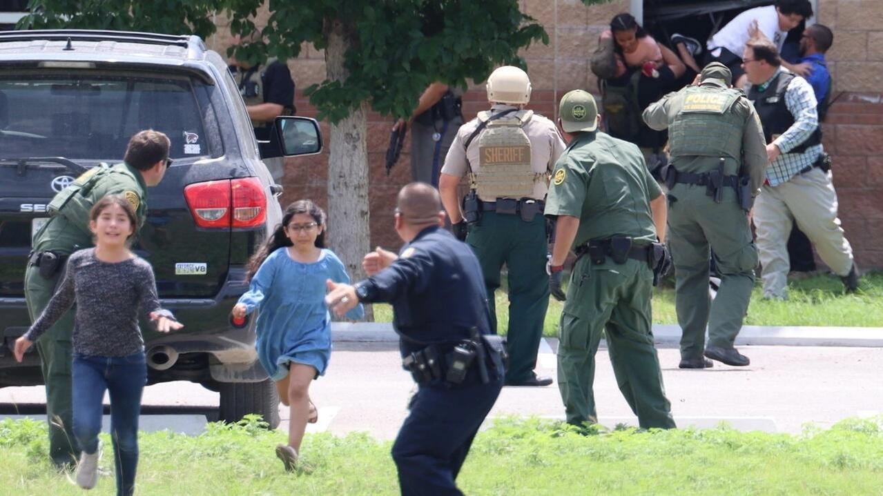 Ảnh minh họa: Nhiều học sinh chạy thoát ra khỏi trường tiểu học Uvalde (Texas, Mỹ) nơi một tay súng đã bắn chết 19 em cùng hai giáo viên ngày 24/05/2022. via REUTERS - Pete Luna/Uvalde Leader-News