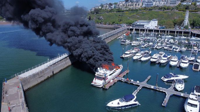 Theo như lực lượng cảnh sát Devon và Cornwall cho biết không có ai thương vong trong vụ cháy của siêu du thuyền dài 26 m đã bốc cháy dữ dội, tạo nên những đám khói đen dày đặc cả một vùng trời khi đang neo đậu ở cảng Torquay, Devon, miền Tây Nam nước Anh.