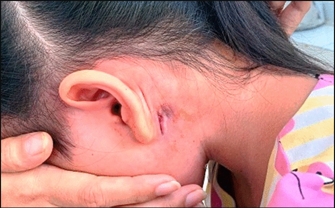 Ngày 7/6, bệnh nhi sốt cao liên tục, áp xe tuyến mang tai 2 bên đã rạch, rỉ mủ máu, bị tiêu chảy 5 lần/ngày.