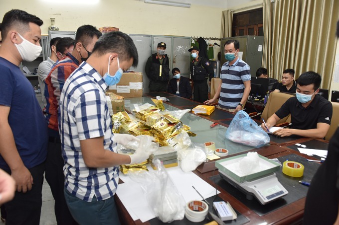Cùng lúc, ban chuyên án đồng loạt khám xét 12 địa điểm ở Nghệ An, Hà Nội, Quảng Ninh, Bắc Ninh và TP HCM, thu thêm 2 bánh heroin, 6 kg ma tuý các loại.