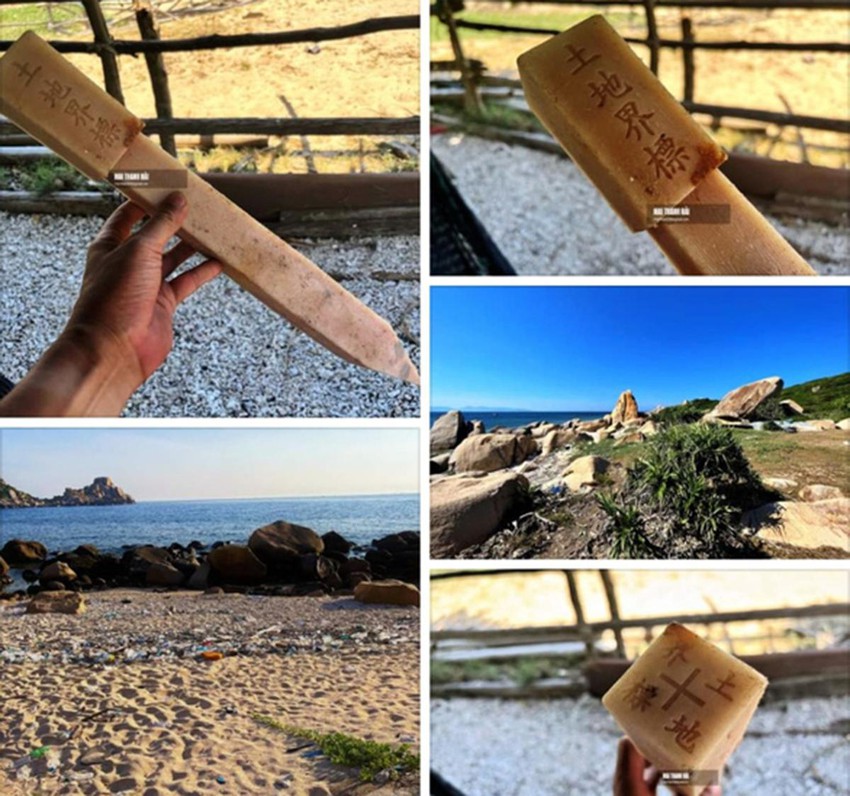 Các cơ quan chức năng tỉnh Khánh Hòa đã thu giữ chiếc cọc nhựa có chữ Trung Quốc mà người dân nhặt tại khu vực bán đảo Đầm Môn.