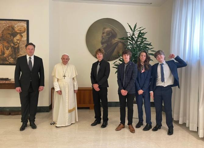 Giới thiệu về bức ảnh này, tỷ phú Elon Musk (51 tuổi) viết: "Rất vinh dự được gặp Giáo hoàng Francis". Địa điểm cụ thể và những thông tin chi tiết về cuộc gặp không được chia sẻ. Xuất hiện trong bức ảnh có 4 người con trai của Elon Musk và người vợ đầu - nữ nhà văn Justine Wilson, gồm Griffin, Kai, Damian, và Saxon.