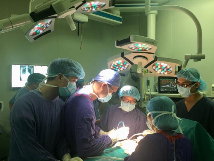 Các bác sĩ phẫu thuật nâng ngực cho bệnh nhân.