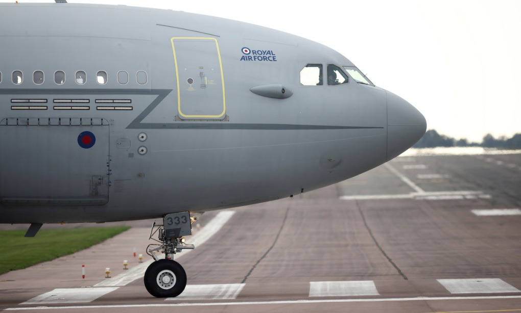 Vận tải cơ Anh chuẩn bị cất cánh tại căn cứ Brize Norton hồi tháng 8/2021. Ảnh: REuters.