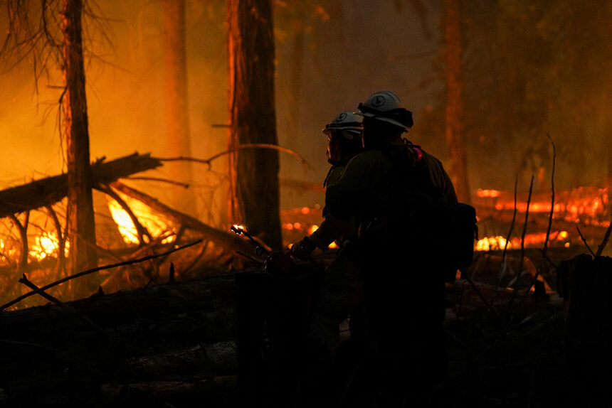 Lính cứu hỏa chiến đấu với đám cháy trong Vườn quốc gia Yosemite ở bang California (Mỹ) vào ngày 11-7 - Ảnh: REUTERS