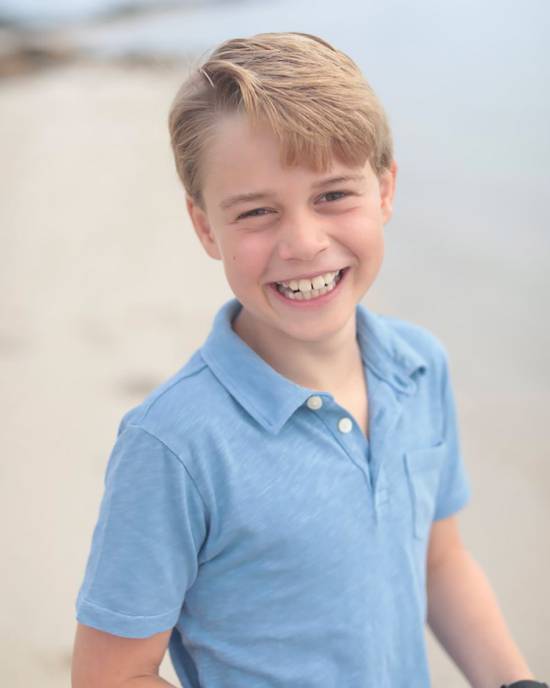 "George bước sang tuổi thứ 9!", bức ảnh được Công tước và nữ Công tước xứ Cambridge chú thích khi chia sẻ lên mạng xã hội, đi kèm biểu tượng chiếc bánh sinh nhật và bóng bay. Ảnh được chụp khi nhà Cambridge đi du lịch ở Anh đầu tháng này. Trong ảnh, hoàng tử nhí mặc sơ mi polo màu xanh da trời, nhìn thẳng vào ống kính và nở nụ cười tươi.