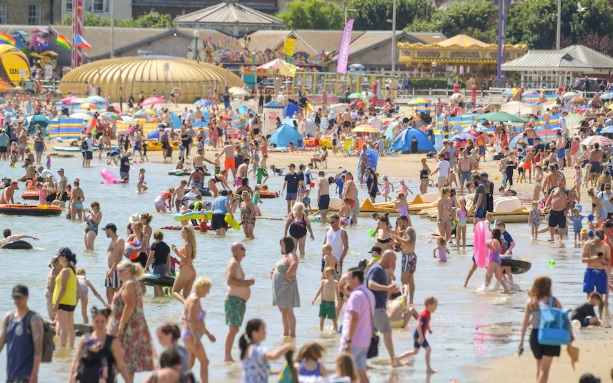 Người dân Anh giải nhiệt ở bãi biển tại Weymouth. Ảnh: Getty Images