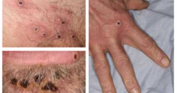Các tổn thương do nhiễm virus đậu mùa khỉ. Ảnh: CƠ QUAN AN NINH Y TẾ ANH