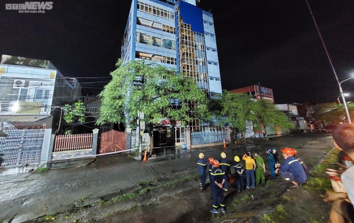 Ngoài ra, mảng tường từ tầng 5 trở xuống của khách sạn cao 8 tầng bị phồng ra bên ngoài. Khách sạn này nằm phía trước ngôi nhà bị sập, giáp mặt đường Tôn Đức Thắng, dưới chân cầu An Dương. Cả tòa nhà khách sạn bị nghiêng về phía sau - nơi ngôi nhà 6 tầng vừa sập.