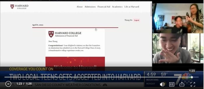 Khoảnh khắc nam sinh biết tin trúng tuyển ĐH Harvard. Ảnh: NBC Sandiago.