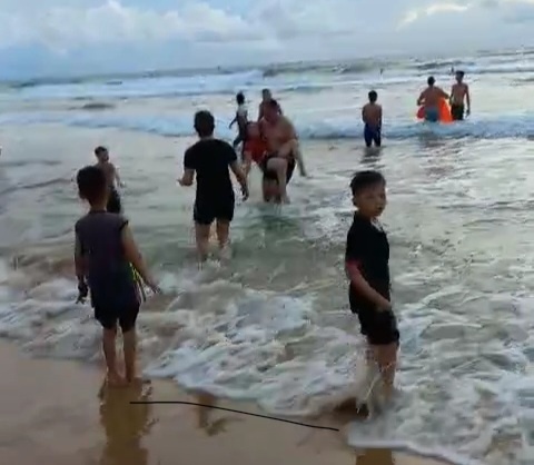 Lúc này, em Trần Văn Phong (17 tuổi, học sinh lớp 11 ở tỉnh Thanh Hoá, là khách du lịch) cùng với 3 người dân địa phương ở gần đó là anh Nguyễn Đức Văn (26 tuổi), Đỗ Duy Dũng (34 tuổi) và Võ Thanh Khánh (37 tuổi) cùng ông Thái bơi ra tiếp để ứng cứu, trong đó anh Khánh bơi thuyền thúng.