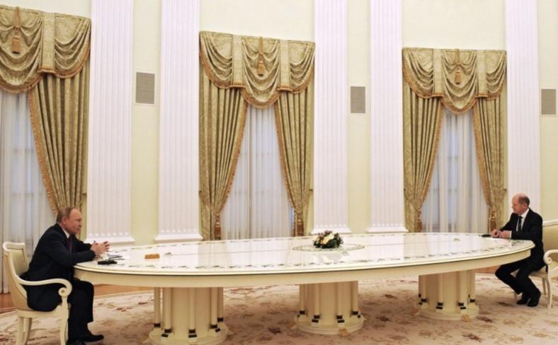 Tổng thống Nga Vladimir Putin và Thủ tướng Đức Olaf Scholz có cuộc gặp tại Nga ngày 15/2. Ảnh: Global Look Press