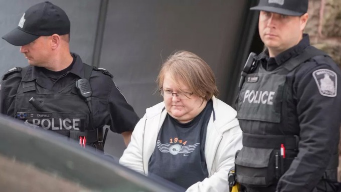 Elizabeth Wettlaufer rời tòa cùng cảnh sát. Ảnh: AFP
