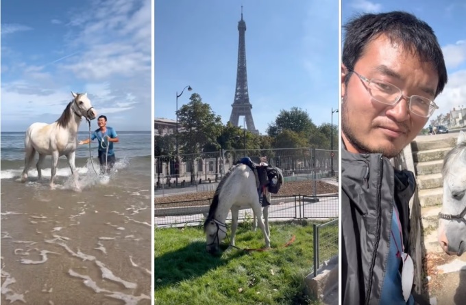 Xu Zhixian và con ngựa Huihui trên hành trình từ châu Âu về Trung Quốc. Ảnh: SCMP.