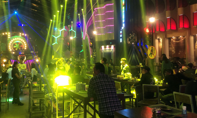 Quán bar Tik Tok tại thời điểm cảnh sát kiểm tra. Ảnh: Hoàng Giang