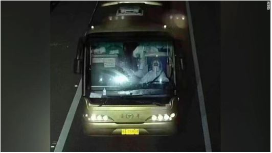 Một bức ảnh được chia sẻ trên mạng xã hội cho thấy chiếc xe buýt đã di chuyển trong đêm, và tài xế cũng mặc đồ bảo hộ, chỉ để lộ đôi mắt và có thể bị hạn chế tầm nhìn.