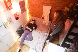 "Bạn gần như có thể với tay từ 'phòng khách' qua bồn rửa tay nếu muốn. Cảm giác như ở ký túc xá thời đại học vậy", Caleb nhận xét khi ngồi trên chiếc sofa gấp duy nhất giữa căn phòng. Khoảng trống còn lại chỉ vừa đủ để một người nằm thẳng.