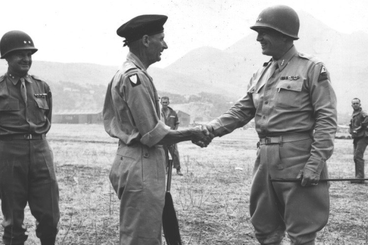 Tướng Mỹ George Smith Patton (người cầm gậy). Ảnh: Wikipedia