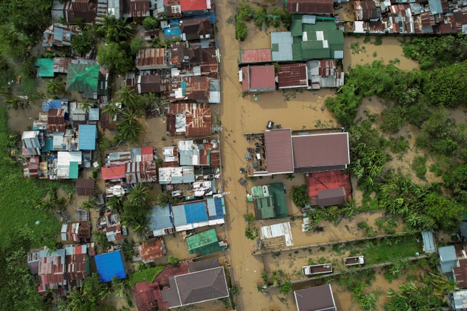 Cảnh ngập lụt ở San Miguel, tỉnh Bulacan được chụp từ trên không. Ảnh: Reuters.