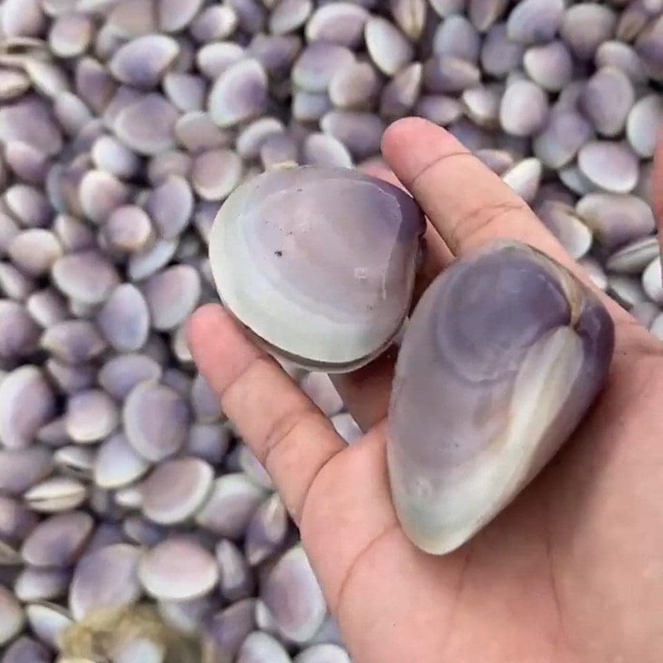 Theo ông Phạm Văn Long, người có kinh nghiệm đi biển nhiều năm ở Giao Thủy, loại ngao dạt vào bờ lần này thường gọi là ngao bông, có vân màu tím pha trắng trên thân và ngày thường hiếm khi đánh bắt được. Ảnh: Lâm Cương