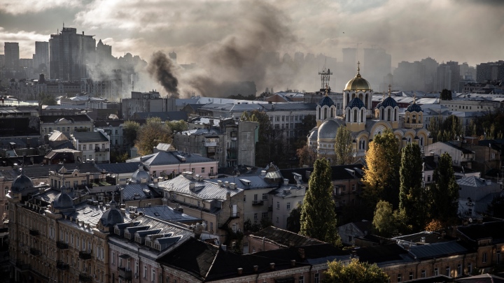 Một góc thành phố Kiev sau cuộc không kích của Nga sáng 10/10. (Ảnh: The New York Times)