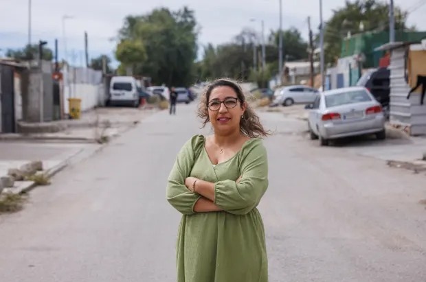 Houda Akrikez, 36 tuổi, là một hòa giải viên đa văn hóa, kiêm sáng lập và chủ tịch của Hiệp hội Tabadol, một tổ chức văn hóa về phụ nữ Morocco ở Cañada Real. Gia đình cô đã sống ở đó từ năm 1994. Ảnh: Guardian.